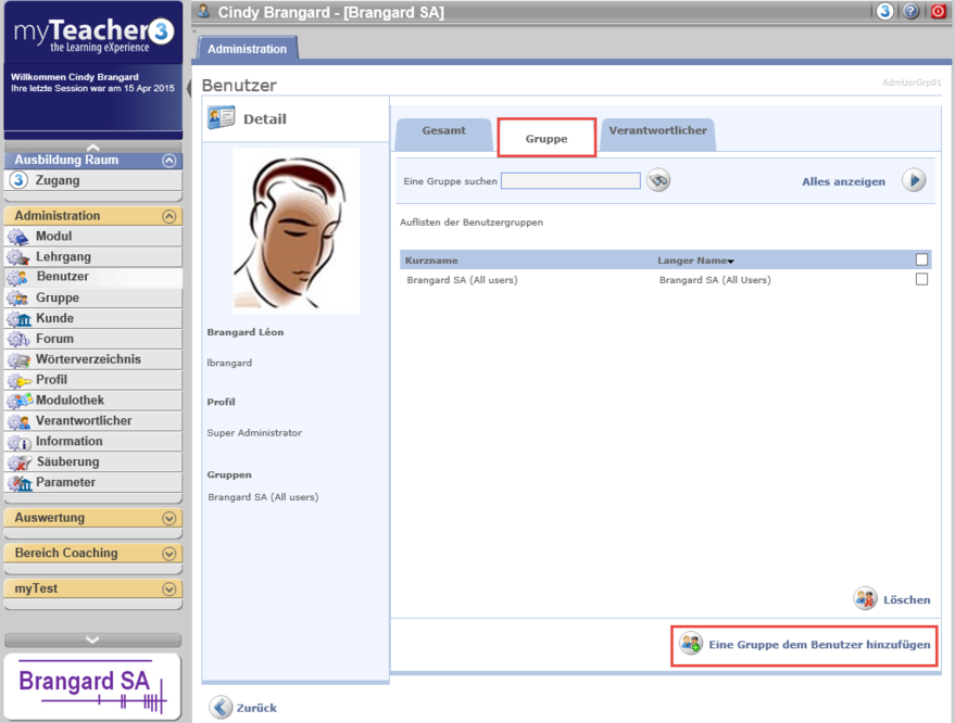 Dieser Benutzer kann nun an eine oder mehrere vorhandene Gruppe(n) hinzugefügt werden.