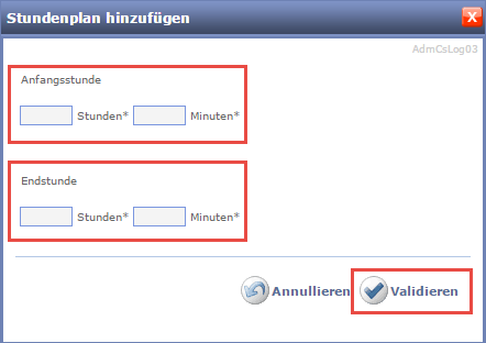 Bei der Erstellung eines Moduls im Klassenzimmer, ist es notwendig, den Stundenplan und das Zimmer, in dem der Kurs stattfinden soll zu präzisieren. Die Auswahl erfolgt durch die Dropdown-Listen.