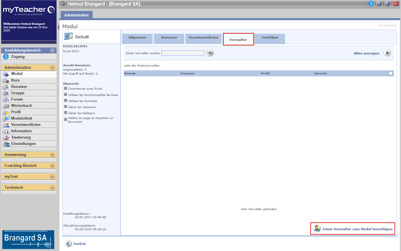 Die Liste der Modulverwalter wird angezeigt (falls vorhanden).