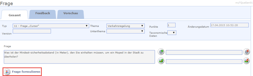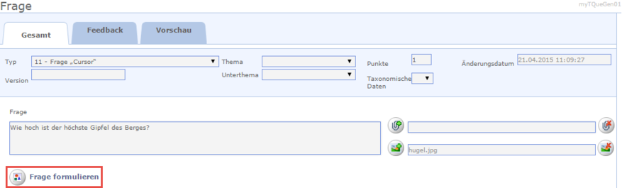 Erstellen einer Frage des Typs 11: Frage „Cursor“