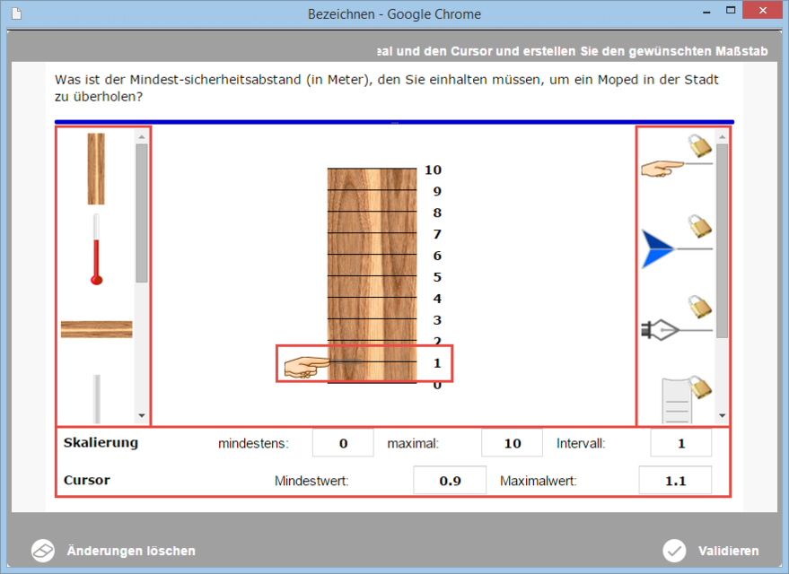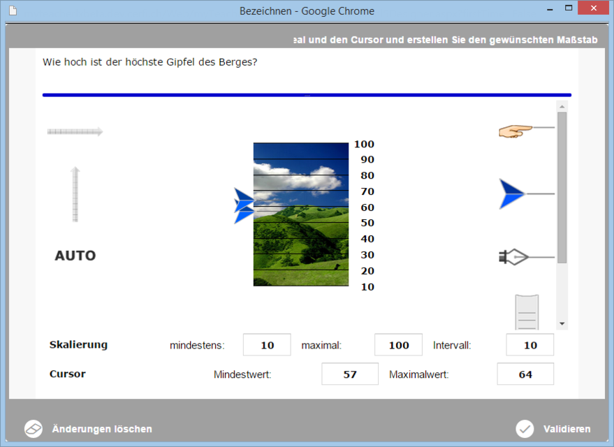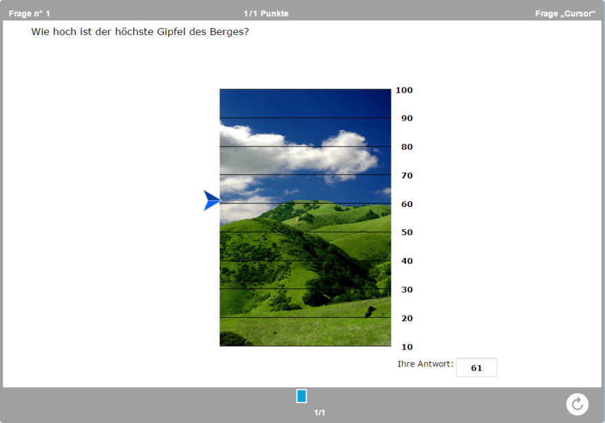 Ziel dieser Frage ist es, den Cursor auf einer graduierten Skala oder auf einem Bild zu positionieren, um die richtige Antwort anzuzeigen.