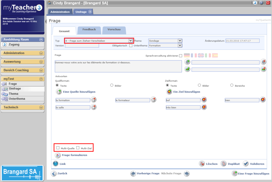 Für Fragen vom Typ 8 (Frage zum Ziehen-Verschieben), zwei Kästchen sind zum Abhacken, für Sondierungen, verfügbar: