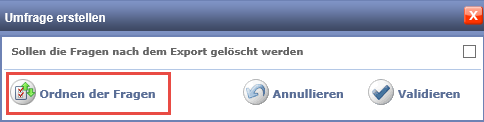 Kreuzen Sie das Kästchen Sollen die Fragen dem Export gelöscht werden, falls erforderlich.