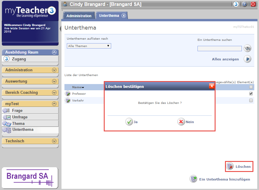 Es ist nicht möglich, ein einer Fragezugeteiltes Unterthema zu löschen.