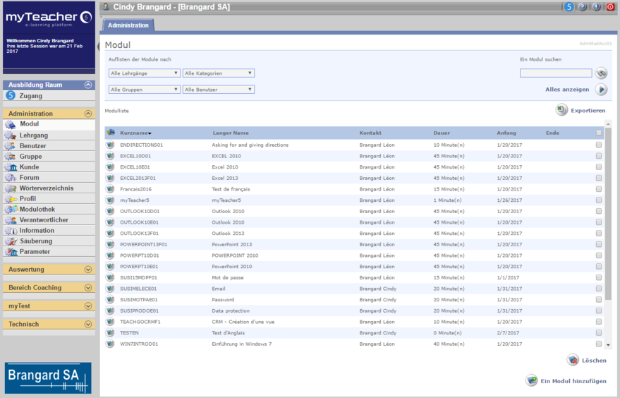 Der Administrationsbereich von myTeacher besteht aus: