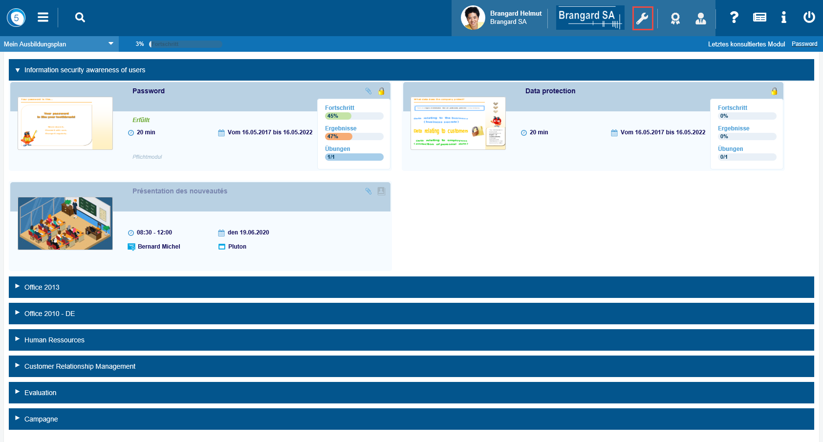 Dieser Bereich ist für alle Benutzer mit Administratorrechten oder für Verantwortliche zugänglich.