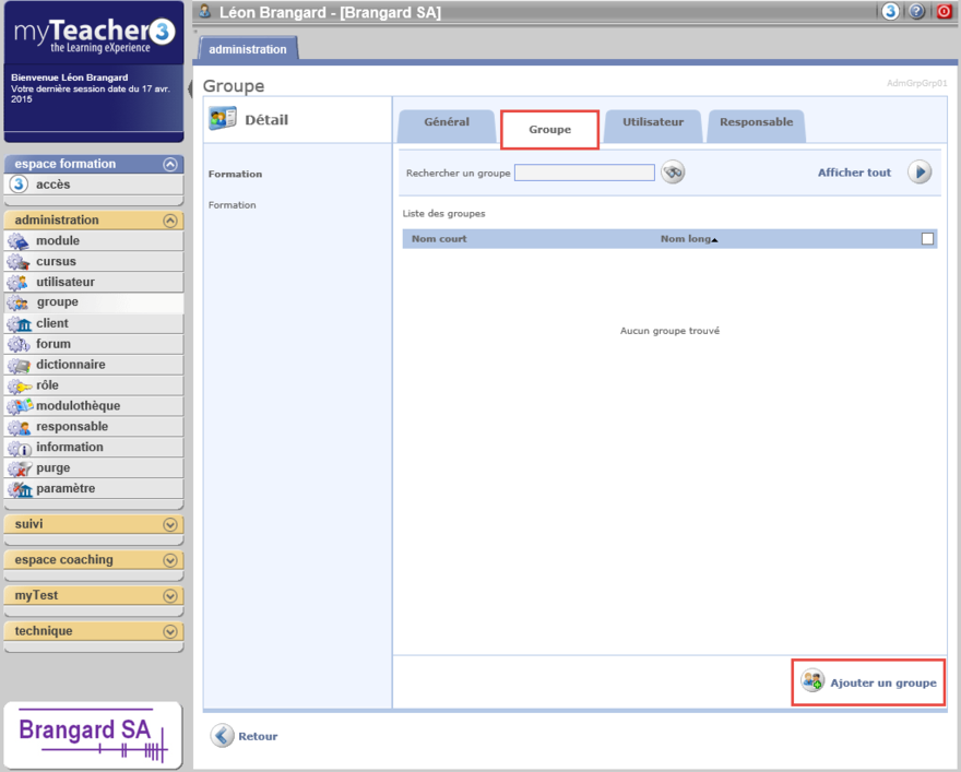 Sélectionner le groupe auquel vous souhaitez ajouter un groupe.