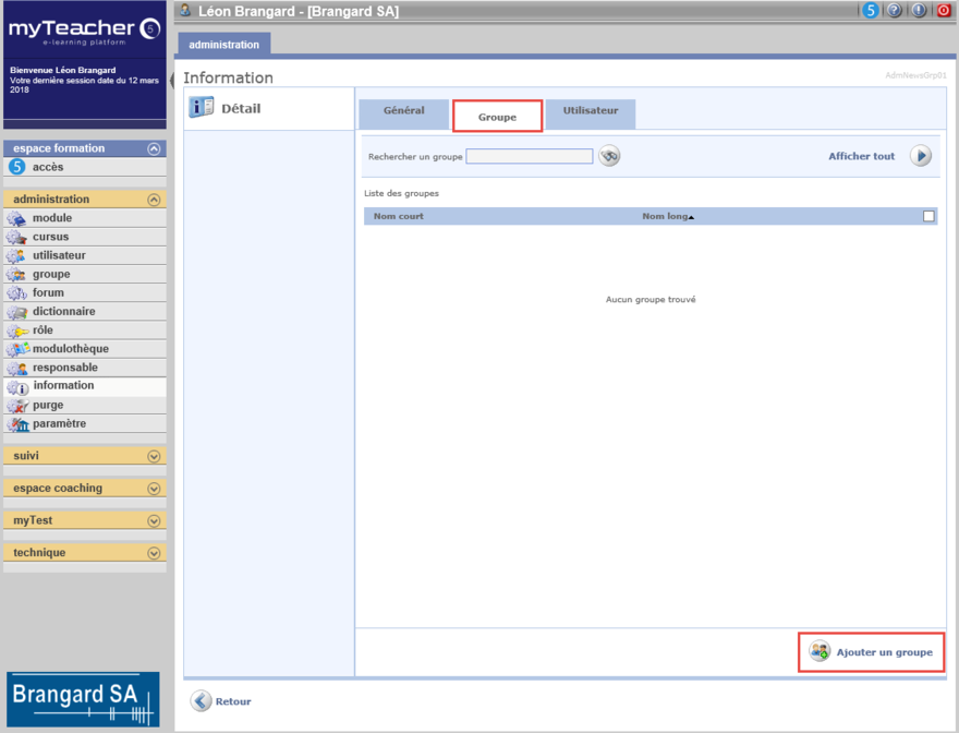 Dans le détail de l'information, cliquer sur l’onglet Groupe, puis sur Ajouter un groupe.