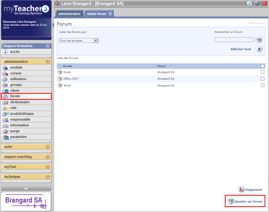Nous conseillons à nos clients d'adopter des noms explicites pour leurs forums. Par exemple, choisir le même nom que celui du cursus ou du groupe auquel il est rattaché.