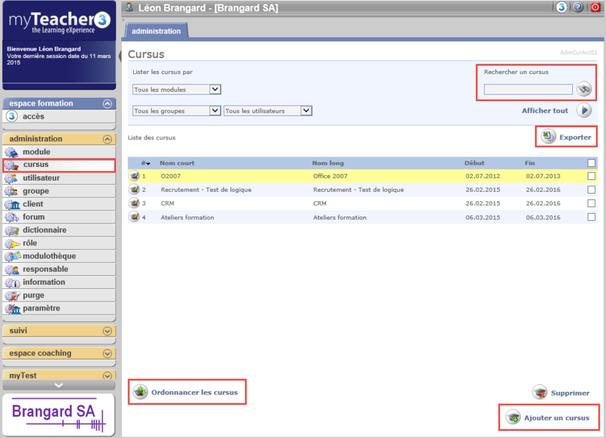 Un cursus apparaît dans le plan de formation de l'utilisateur pour autant qu'il y soit inscrit et que les dates de validité soient bonnes.