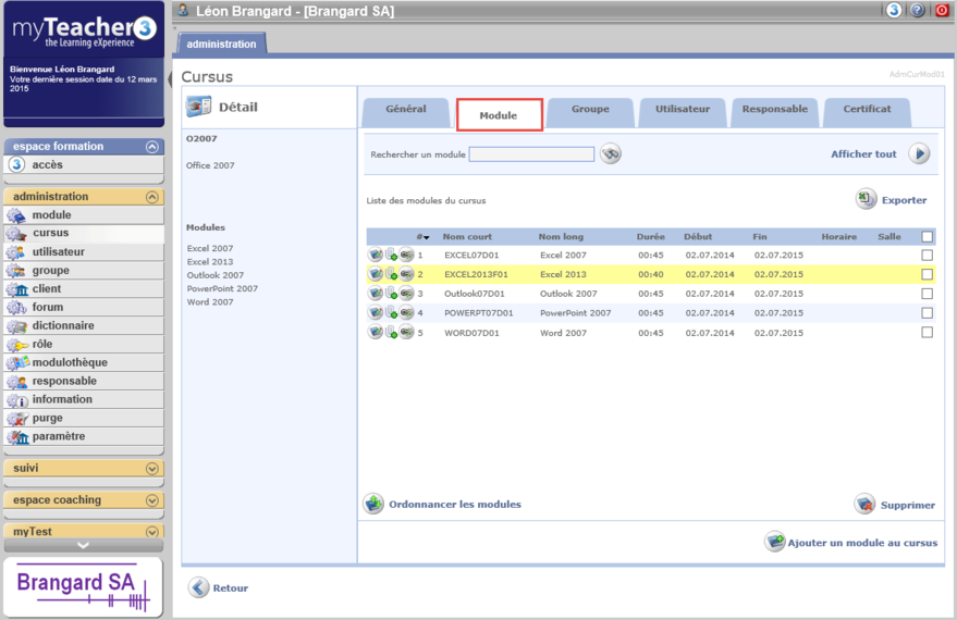 Tous ces paramètres sont détaillés dans la rubrique Administration>Module>Paramétrer un module.