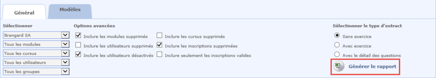 Une fois tous les choix effectués, cliquer sur le bouton Générer le rapport.