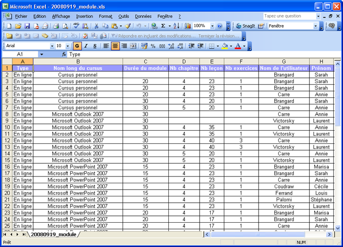 Le rapport ainsi obtenu est alors exploitable comme n'importe quel fichier Excel.
