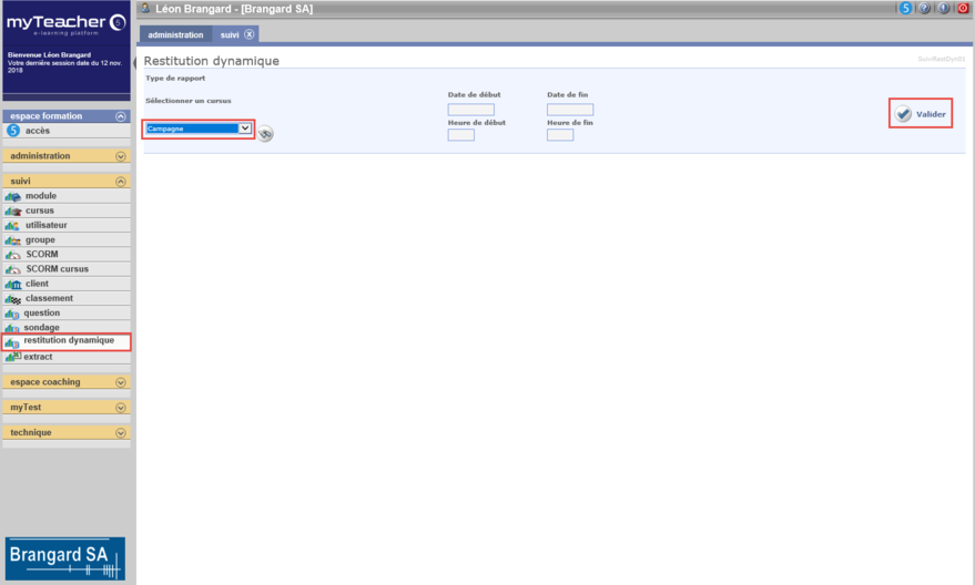 La rubrique restitution dynamique du bloc suivi est accessible par les personnes qui ont le droit consulter le suivi.