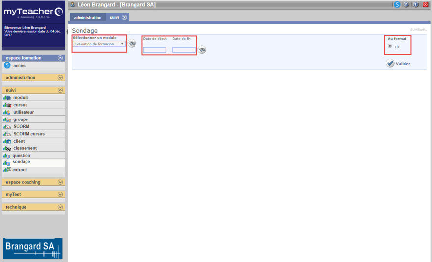 La rubrique sondage du bloc suivi est accessible par les personnes qui ont le droit consulter le suivi.