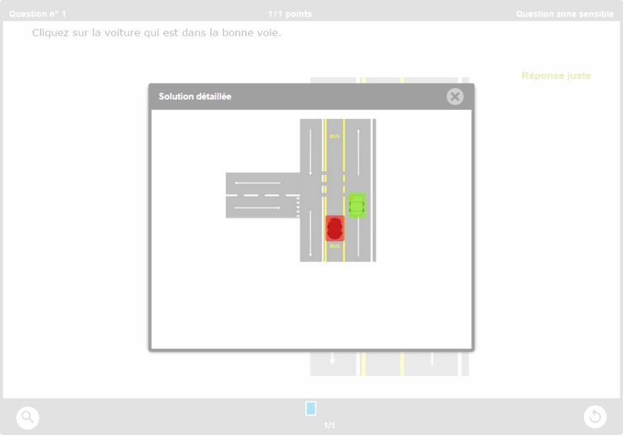 Une zone verte représente une bonne réponse et donc une zone sur laquelle l’utilisateur doit cliquer pour avoir juste.