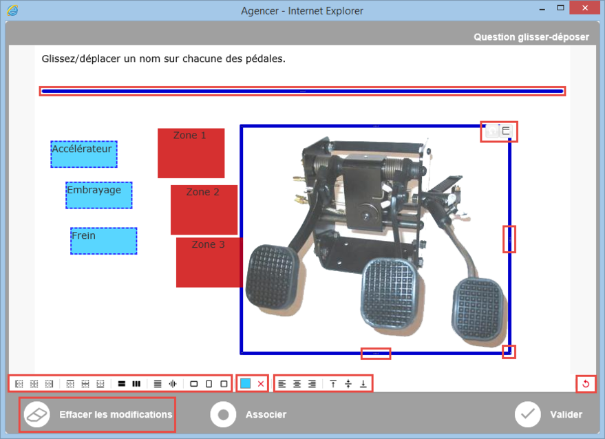 - utiliser les rectangles placés sur le côté des zones ou des images pour redimensionner les objets horizontalement ou verticalement