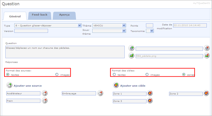 Création d'une question de type 8: Question glisser-déposer
