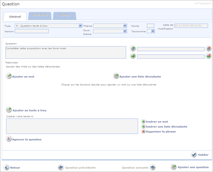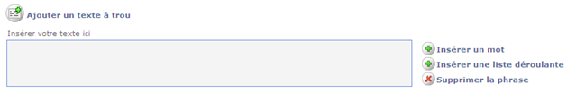 Cliquer sur Ajouter un texte à trou pour saisir le texte que l’utilisateur doit remplir.