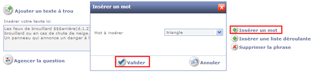 Pour insérer un mot, cliquer sur Insérer un mot, sélectionner le mot à insérer.