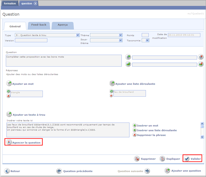 Utiliser si besoin le bouton Agencer la question pour modifier l’apparence de la question.