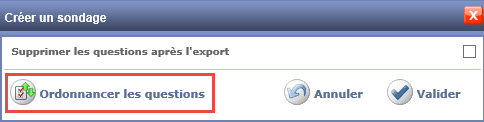 Cliquer sur Ordonnancer les questions afin de modifier leur ordre si nécessaire, mais également afin de grouper des questions.