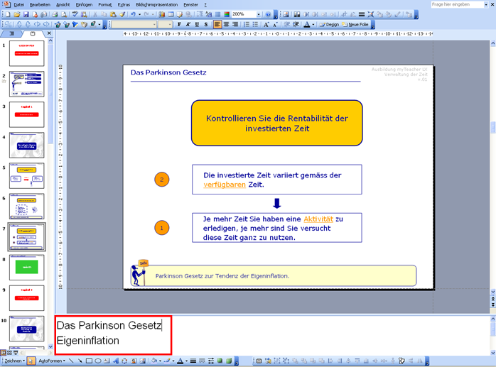 Die Ausdrücke Das Parkinson Gesetz und Eigeninflation erscheinen im Index des Lehrgangs (oder Lehrgänge) die das Modul enthalten.