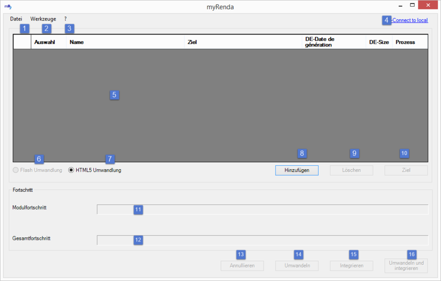 | 3 | Menü ? Zugriff auf die Hilfe und bezüglich myRenda (Lizenzmanagement) |