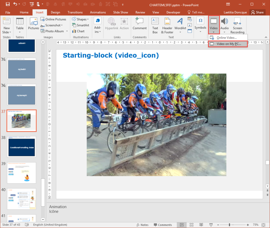 And then click on Insertion > video > Video from the folder, and insert the desired video.