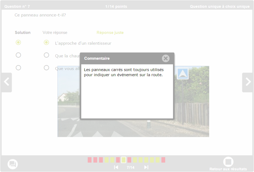 L'apprenant peut avoir la possibilité d'afficher ou non les feedback