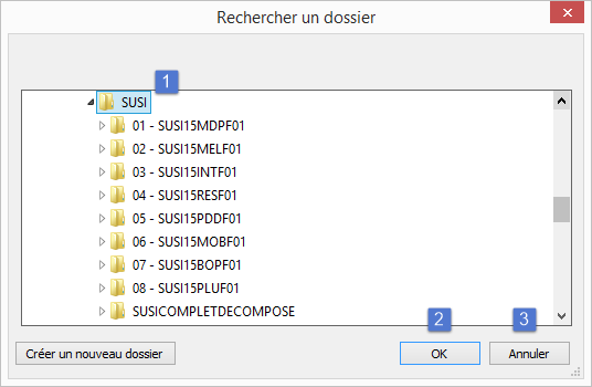 La boite de dialogue Rechercher un dossier s'ouvre.