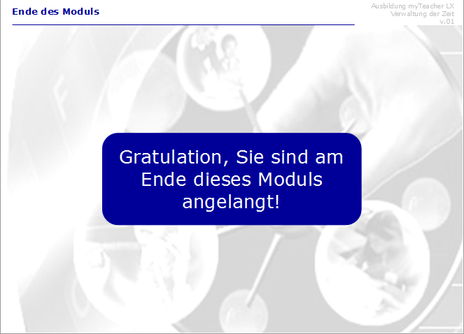 In einem myTeacher Modul ist es ratsam, eine Folie für das Modulende vorzusehen.