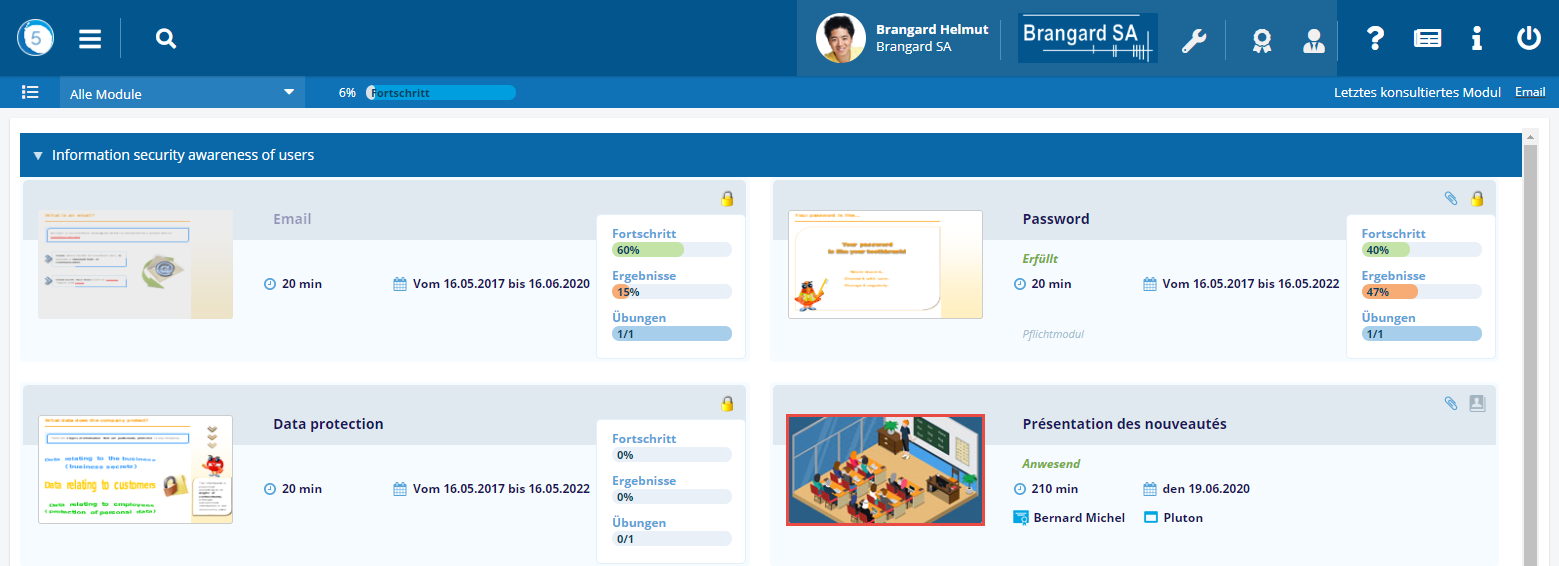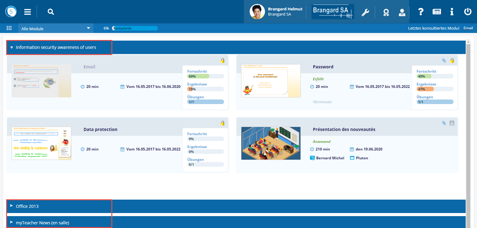 Um ein Modul zu öffnen, klicken Sie auf seinen Namen oder auf seine Miniaturansicht.
