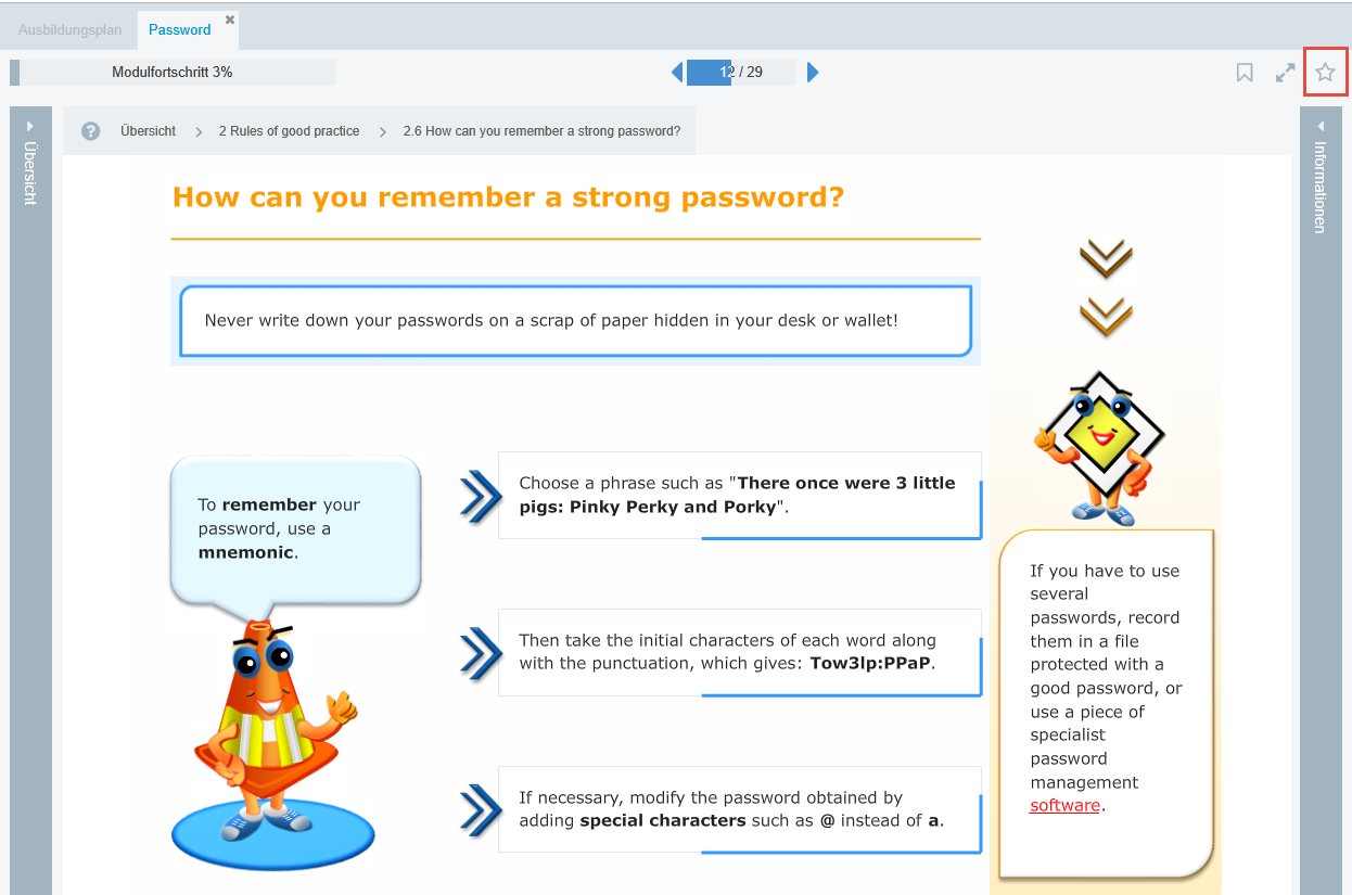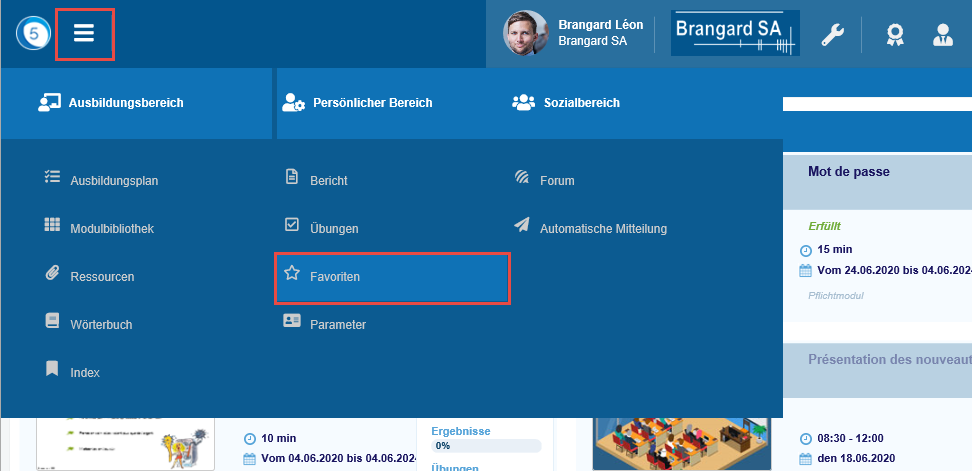 Um die laufende Lektion problemlos auffinden und ansehen zu können, fügen Sie sie zu den Favoriten hinzu.