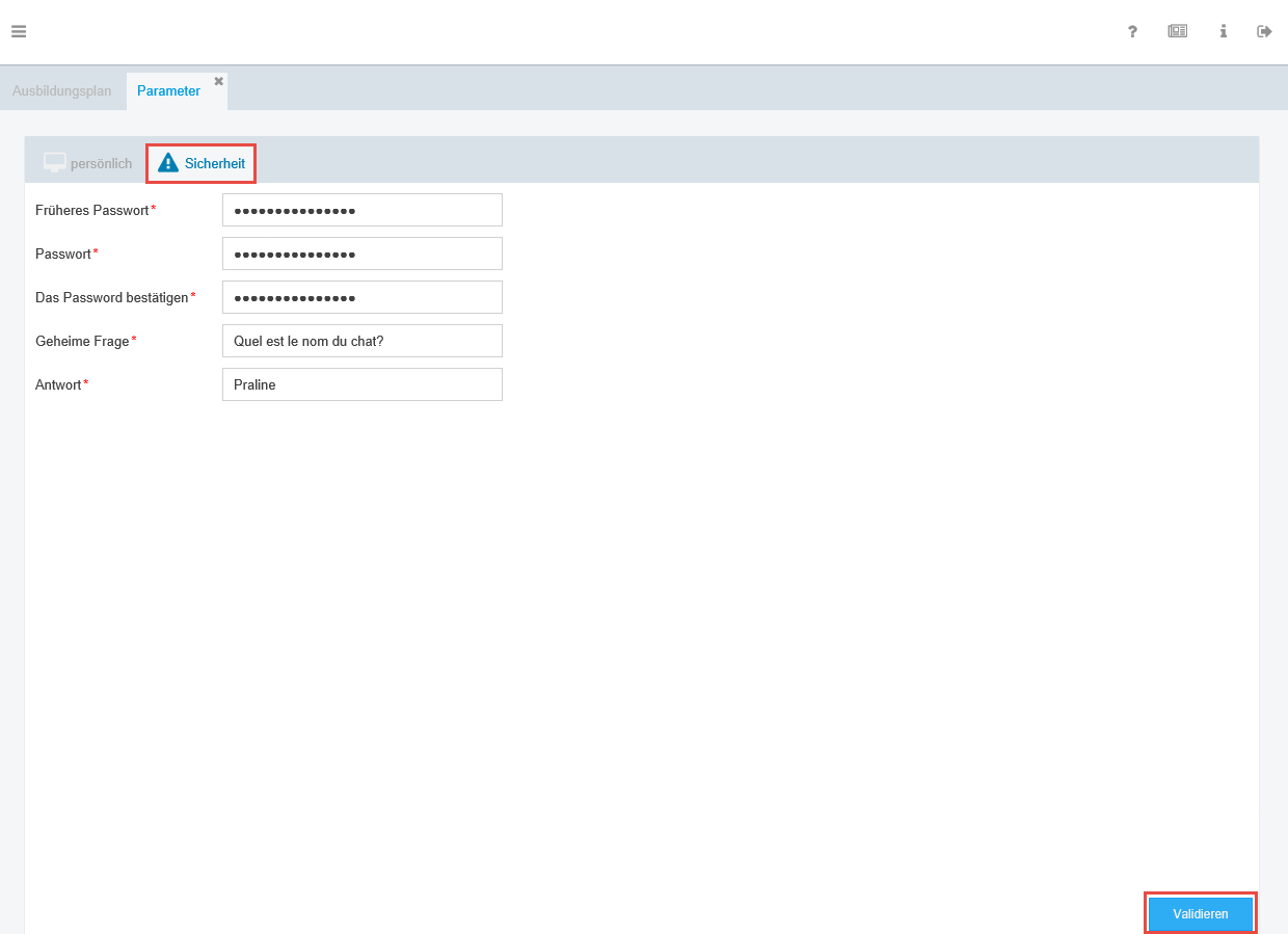 Es ist möglich, das Passwort und die geheime Frage/Antwort bei vergessenem Passwort zu ändern.