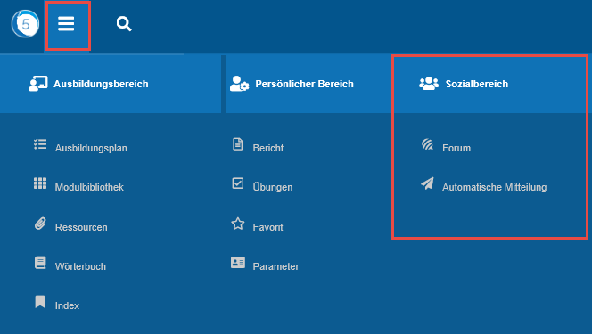Dieser Bereich ist über das myTeacher's Burger-Menü zugänglich.  Dieser Bereich ist über das myTeacher's Burger-Menü zugänglich.