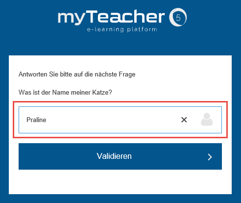 Eingabe der Antwort auf die geheime Frage