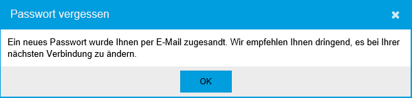 E-Mail mit dem neuen Passwort