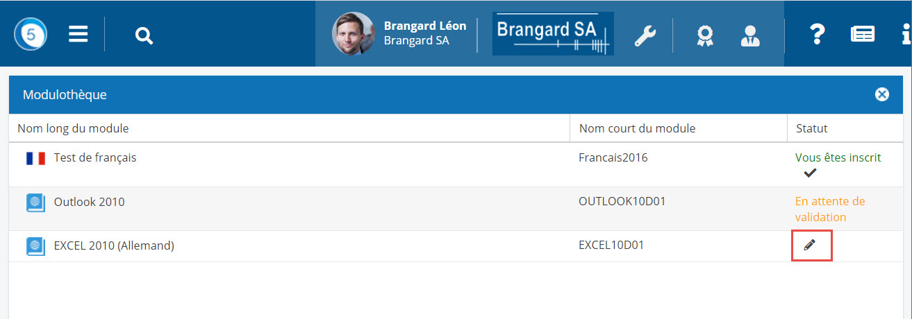 Cliquer sur le bouton crayon pour s'inscrire au module.